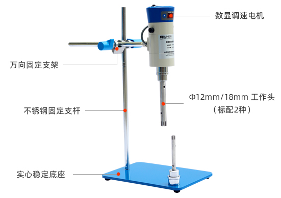 實驗室均質(zhì)機是為實驗室微量實驗而設計的一款實驗室設備。通過機械外力作用的方法使液-液、固-液物料顆粒粒徑變窄,使一種相均勻分布到另一種或多種相中,達到細化均質(zhì)、分散乳化效果,從而形成穩(wěn)定的液-液、固-液分散體系的狀態(tài)??膳涠喾N不同規(guī)格工作頭,可以適合容器為直徑15mm的標準試管。