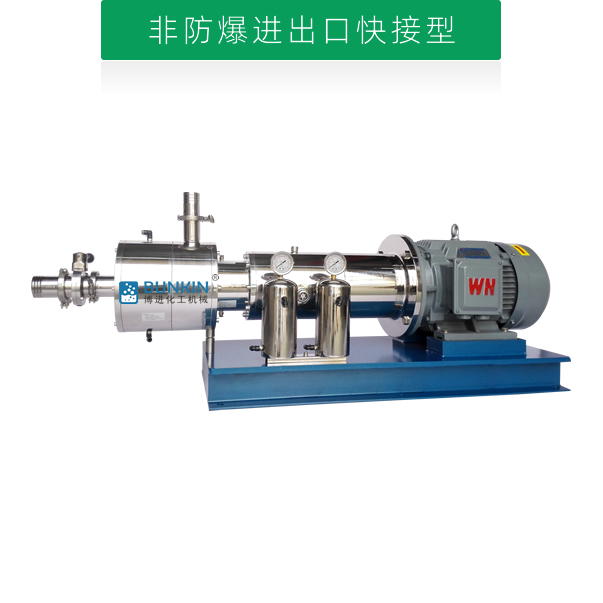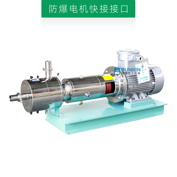 管線式三級乳化泵是連續(xù)式生產或循環(huán)處理精細物料的高速高效率乳化機。電機帶動轉子高速運轉,通過機械外力作用的方法使液-液、固-液物料顆粒粒徑變窄,使一種相均勻分布到另一種或多種相中,達到細化均質、分散乳化效果,從而形成穩(wěn)定的乳狀液的狀態(tài)。單級管線式高剪切乳化機前級可配置送料泵,對中高粘度物料有一定的適用性。設備噪音低,運轉平穩(wěn),無死角,物料強制性通過分散、剪切的作用。具有短距離、低揚程輸送功能?!井a品專利號:ZL201820997023.8】