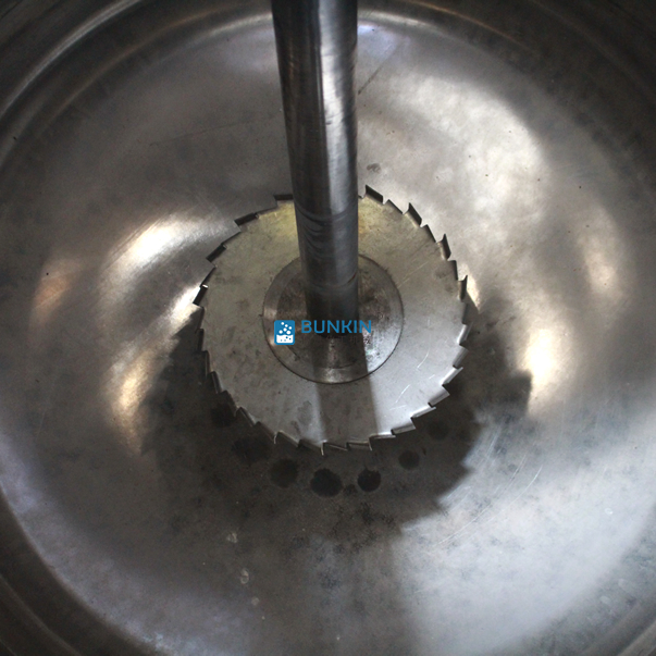 高速分散釜通過(guò)分散盤的高速運(yùn)轉(zhuǎn),使物料呈環(huán)狀流,產(chǎn)生強(qiáng)旋渦,呈螺旋狀下降到渦流底部。粒子間產(chǎn)生強(qiáng)烈的剪切撞擊與磨擦,達(dá)到迅速分散、溶解、均勻混合、簡(jiǎn)易乳化的功能。