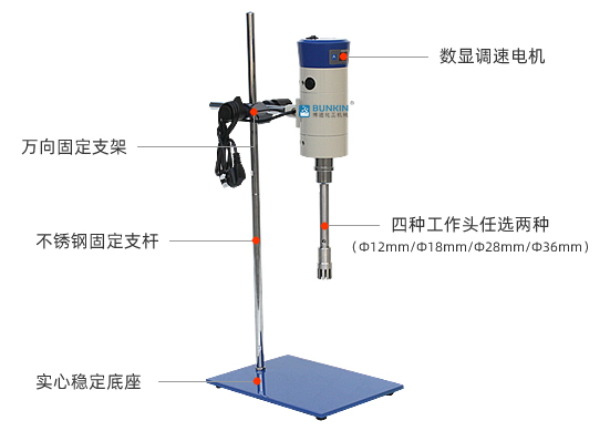 設(shè)備帶有鎖緊及升降手柄,能夠快速升降和固定;均質(zhì)頭快拆式設(shè)計,更換方便,清洗容易。