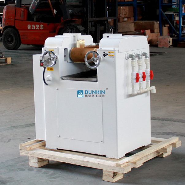 三輥研磨機適用于需要分散而細度要求較高的膏體或高粘度物料使用;通過水平的三根輥筒的表面相互擠壓,手搖式調(diào)節(jié)輥筒之間的間距,以不同速度的摩擦達到研磨效果。裝有緊急制動按鈕,防止落入異物導致的設(shè)備損壞。輥子使用特殊硬質(zhì)合金澆鑄而成,也可以使用純氧化鋯材質(zhì)。