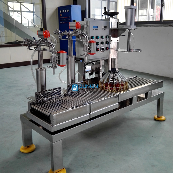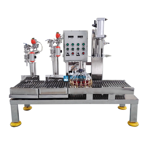 雙頭半自動灌裝機(jī)采用重量法計量,通過稱重傳感器輸出信號控制進(jìn)料閥的開度以實現(xiàn)自動灌裝的目的。進(jìn)料口前端配有進(jìn)料泵或者原料儲罐加壓的方式將物料從罐體送至灌裝機(jī),在灌裝前可以增加過濾裝置去除雜質(zhì),保證產(chǎn)品質(zhì)量;該設(shè)備具有灌裝效率高、灌裝誤差小的優(yōu)點,在涂料、油墨、油漆、瀝青、膠水、潤滑油、石油化工、精細(xì)化工等行業(yè)有廣泛的應(yīng)用,不僅適合流體的灌裝,同樣適合膏體產(chǎn)品的灌裝。