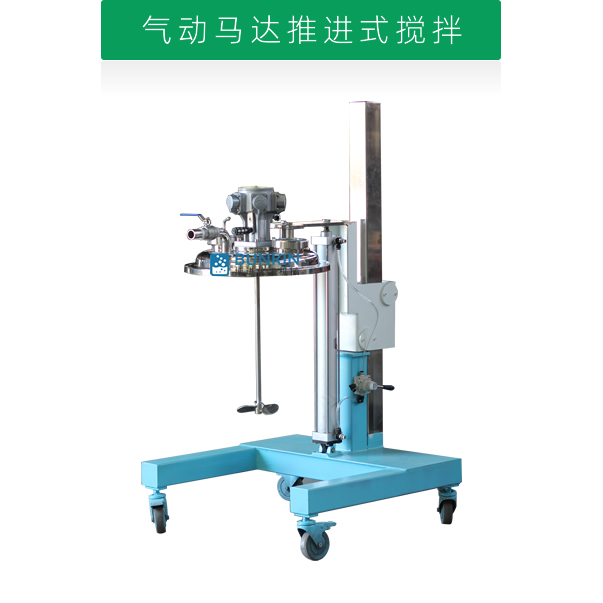 氣動升降分散機通過分散盤的高速運轉(zhuǎn),使物料呈環(huán)狀流,產(chǎn)生強旋渦,呈螺旋狀下降到渦流底部。粒子間產(chǎn)生強烈的剪切撞擊與磨擦,達到迅速分散、溶解、均勻混合的功能。通過氣閥旋轉(zhuǎn)或電磁閥點動控制實現(xiàn)氣缸工作,利用氣缸升降帶動電機及工作頭升降。